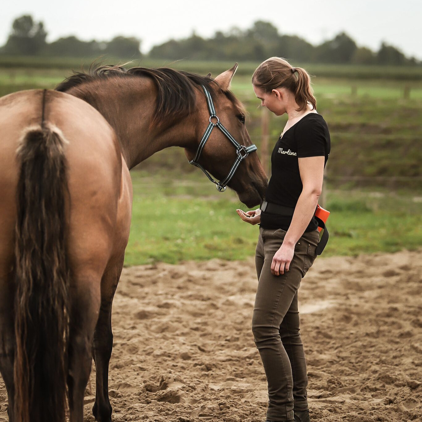 Van paard én mens. In een ideale training zijn er goed gereguleerde, positieve emoties bij mens en dier. Echter kan tijdens het trainen, om legio redenen, de spanning vanuit één of allebei de kanten oplopen. Ik heb hier graag oog voor en begeleid jullie beiden bij het signaleren en het omgaan hiermee, vanuit de nieuwste wetenschappelijke inzichten. Mijn achtergrond in mindfulness, adem- en ontspanningstherapie ondersteunt daarbij.